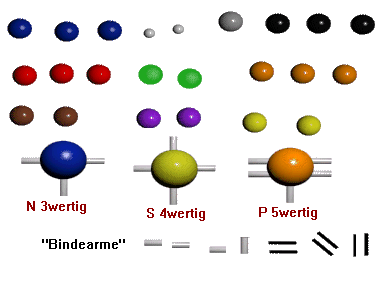 4. Wertigkeit: 3wertig bedeutet, daß das Atom drei Bindearme hat 2wertig zwei Bindearme usw.