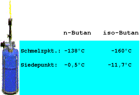 Bei Untersuchungen von gasförmigen Kohlenwasserstoffgemischen entdeckte man neben dem bereits bekannten normalen Butangas C4H10 ein zweites Butangas (Iso-Butan) der Summenformel C4H10 mit deutlich tieferem Schmelz- und Siedepunkt.